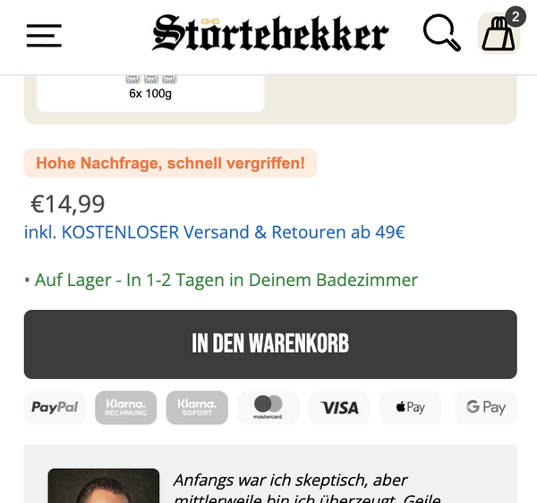 Aus unserer 5-Jährigen Erfahrung mit realen E-Commerce Brands unserer Agentur.