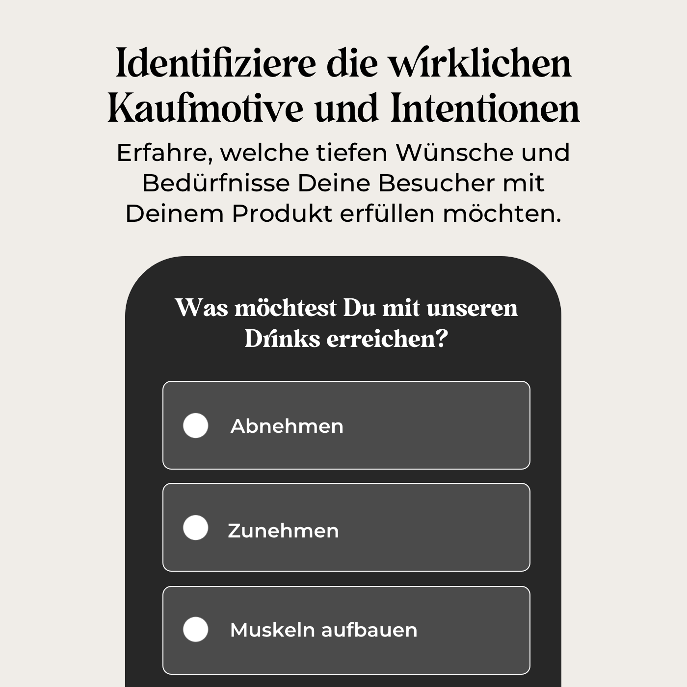 Erhalte ein tiefes Zielgruppenverständnis und finde heraus, weshalb Besucher nicht bei Dir bestellen wollen. Steigere dadurch Deine Conversion Rate und optimiere Deine Werbeanzeigen.