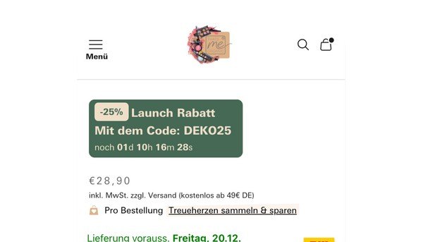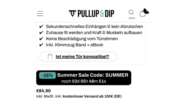 Mit einem Aktionscountdown auf der Produktseite visualisierst Du das limitierte Angebot des Streichpreises.